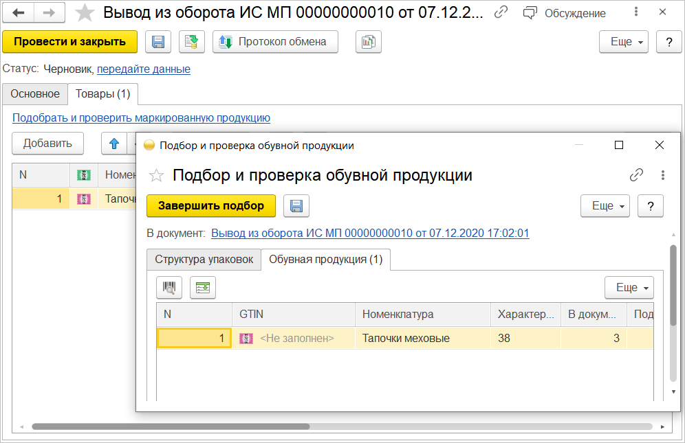 При этом будет создан документ Вывод из оборота ИС МП с Причиной вывода из оборота – Розничная продажа.