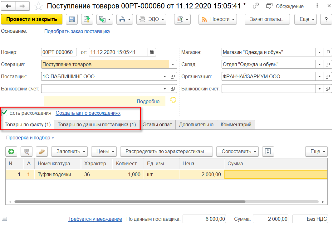 Был поддержан функционал работы с актами о расхождении ЭДО на основании расхождений данных поставщика и фактически поступившей продукции с учетом кодов маркировки.