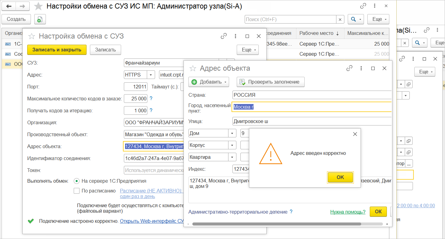 Также для динамического токена используется Адрес объекта. Здесь нужно указать территориальное местоположение объекта. Данная информация необходима для дальнейшего автоматического обновления идентификатора соединения.