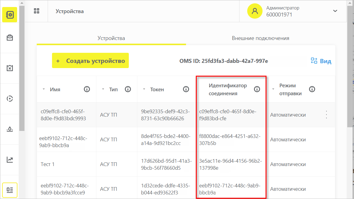 А затем в разделе Устройства личного кабинета «Честного знака» нужно скопировать значение поля Идентификатор соединения и вставить в одноименное поле карточки настройки СУЗ в программе.