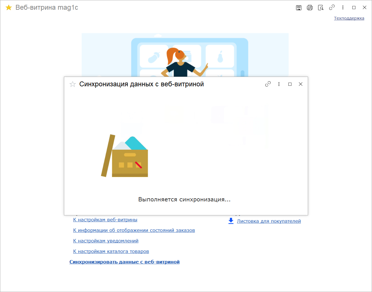 В процессе работы всегда можно вернуться к настройкам и внести изменения. Также в любой момент можно выполнить синхронизацию данных с веб-витриной.