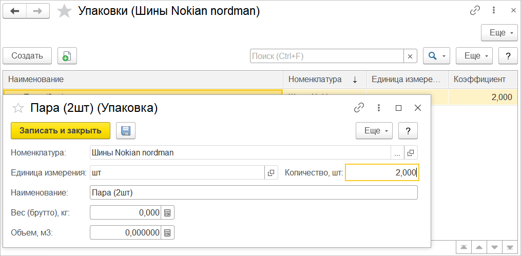 Подбор товаров происходит с учетом упаковки, т.е. пара шин будет добавлена отдельной строкой, а не объединена в строке с шинами, продаваемыми штучно.