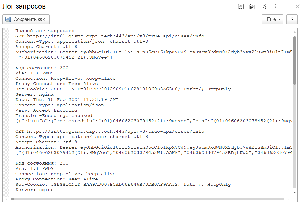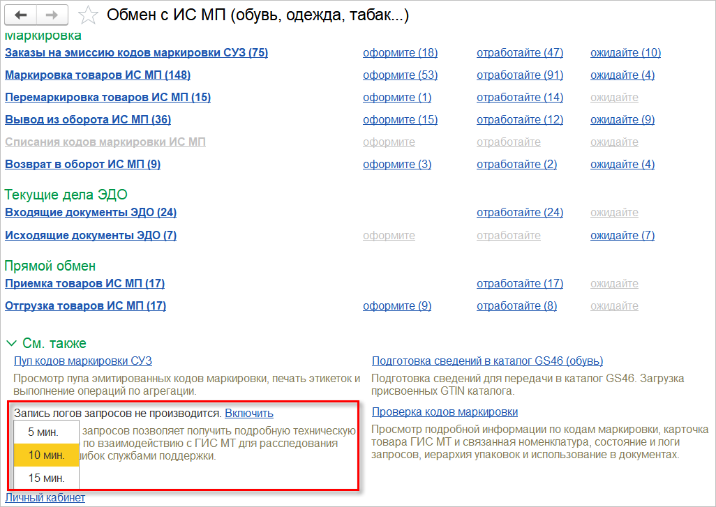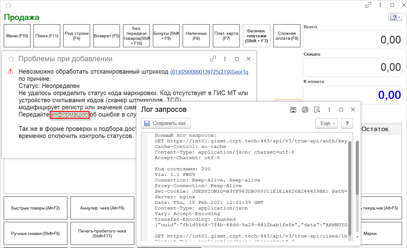 Указанные на форме данные позволяют провести первичный анализ проблем с кодами маркировки. А данный лог потребуется, если внешних признаков проблемы не обнаружено.