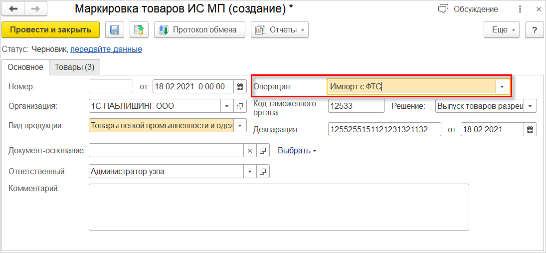 Оператором ЦРПТ постепенно заменяется операция Производство вне ЕАЭС (Импорт) на Импорт с ФТС.