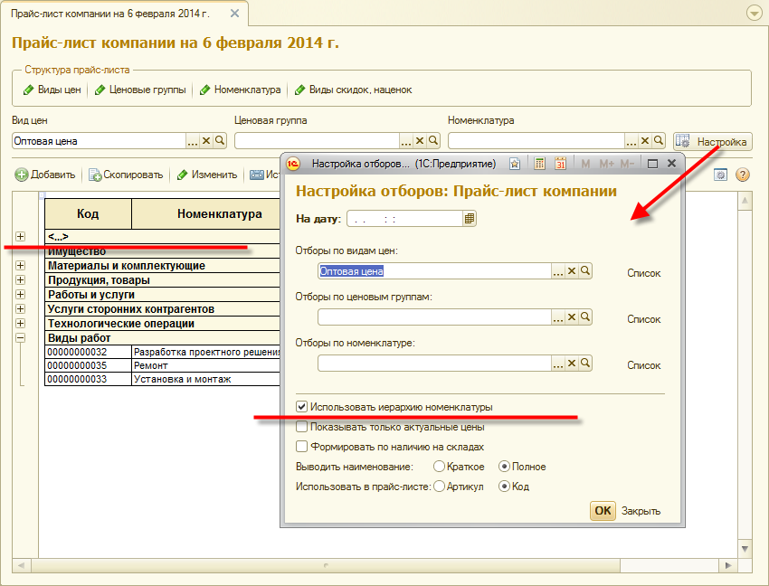 Если флаг выключен, при формировании прайс-листа будет использоваться иерархия ценовых групп.