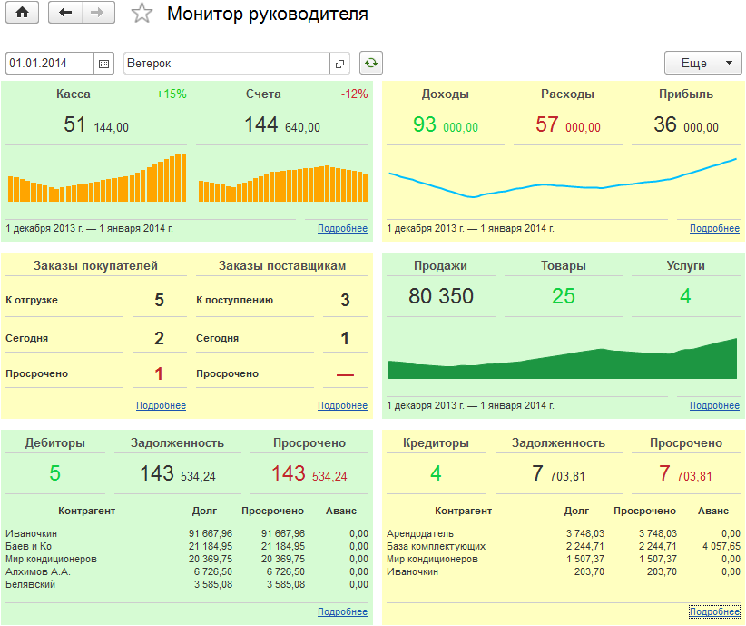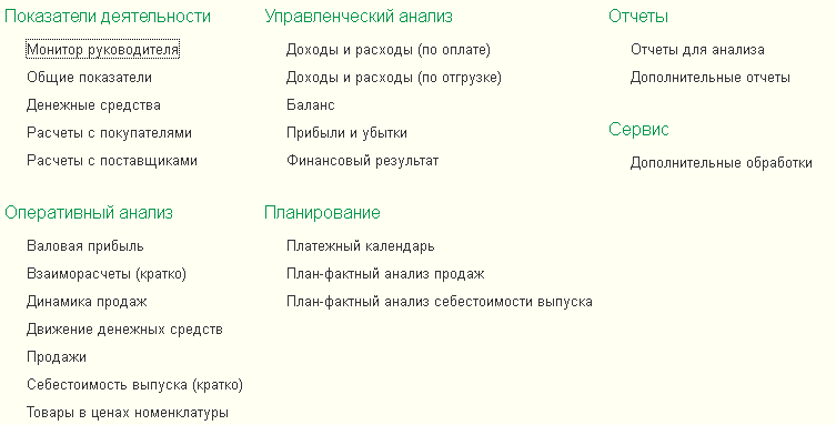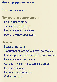 В новой версии программы изменены и улучшены мониторы показателей деятельности, доступные руководителю предприятия в разделе Анализ: