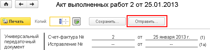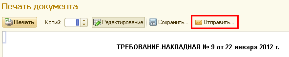 | Отправить | Отправление печатной формы в виде вложений к электронному письму на указанные адреса. Предварительно должна быть настроена учетная запись отправки электронной почты. |