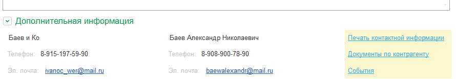 Например, в приведенном выше рисунке имеется добавленный для справочника Контрагенты вид контактной информации Адрес для рекламной продукции.