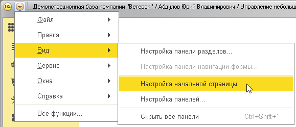Пользователь может настроить состав своей начальной страницы, выбрав команду главного меню Вид | Настройка начальной страницы.