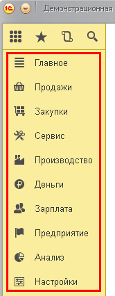 В панели разделов программы появился новый раздел Главное. Он позволяет получить быстрый доступ к важным разделам программы. Что поместить в раздел Главное, определяет разработчик программы.