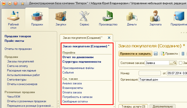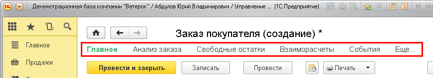 Теперь давайте посмотрим ту же форму создания заказа покупателя в новой версии программы: