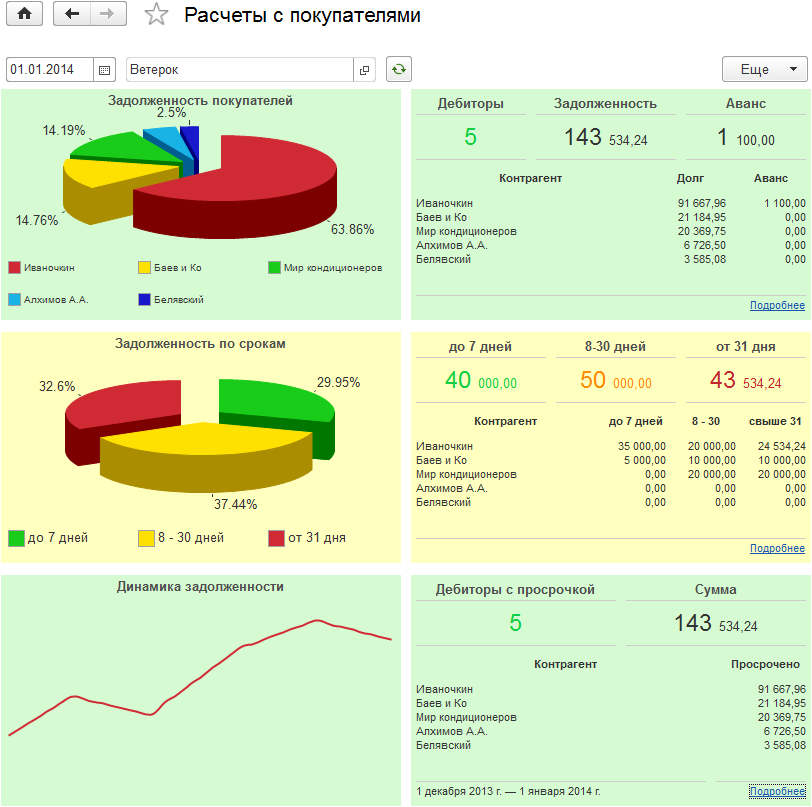 3. Для мониторов Расчеты с покупателями и Расчеты с поставщиками были добавлены новые показатели:
