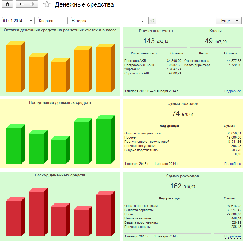 2. Монитор Денежные средства сделан более информативным и наглядным. В него добавлены новые показатели, а графики стали красивее.