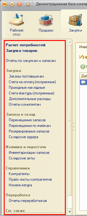 Меню второго уровня в программе называется панелью навигации. Раньше эта панель располагалась у левого края экрана программы.
