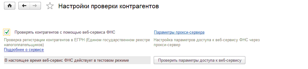 Проверка выполняется каждый раз при изменении ИНН и КПП контрагента. Дополнительно, один раз в неделю в фоновом режиме проверяются все контрагенты, занесенные в информационную базу.