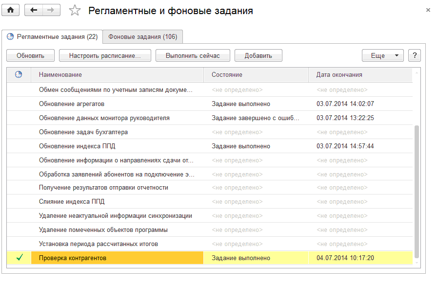 Следующие проверки будут выполняться регламентным заданием.