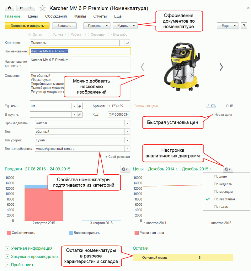 Карточка номенклатуры теперь стала более удобной, функциональной и наглядной!