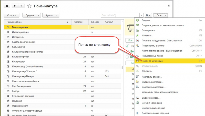 Теперь можно использовать сканер штрихкодов для поиска номенклатуры в списке номенклатуры.