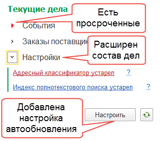 Появилась возможность настроить автоматическое обновление списка текущих дел.