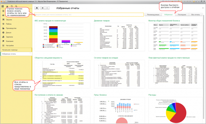 Теперь вы можете быстро найти нужный вам отчёт по наименованию или тегу.