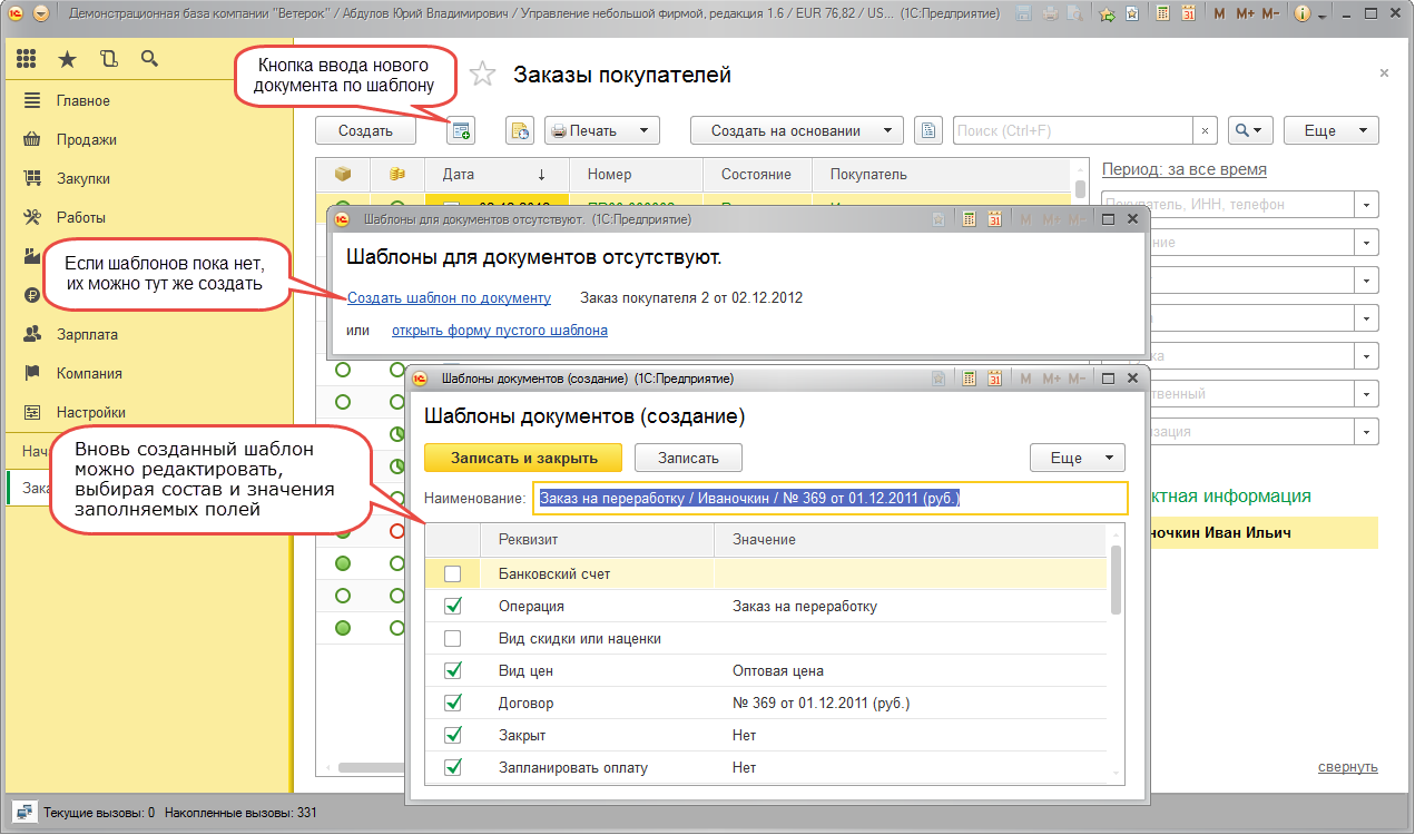 Шаблон для заполнения документа легко создать и изменить. Для заполнения доступно большинство основных реквизитов документа.