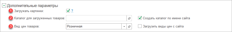 В группе Дополнительные параметры можно изменить настройки загрузки, установленные по умолчанию.