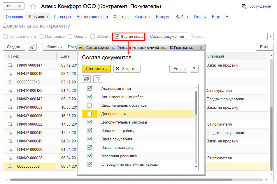 Пользователи теперь самостоятельно могут выбрать состав документов для отображения в журнале. Для этого в форму добавлен специальный фильтр.
