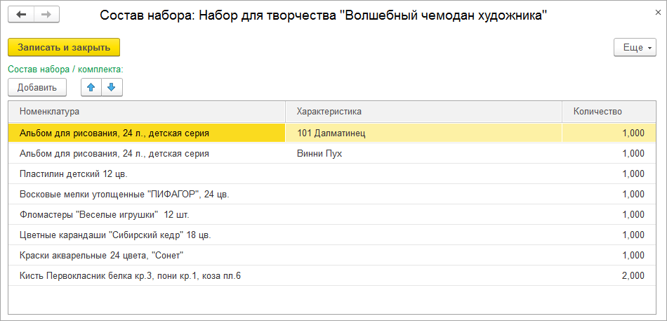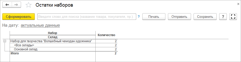 Важно отметить, что набор не хранится на складе как самостоятельная единица, процесс комплектации происходит в момент отгрузки товаров покупателю.