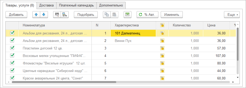 Добавление новых табличных частей позволило при синхронизации заполнять соответствующие таблицы в документах перемещения запасов в 1С:Бухгалтерия.