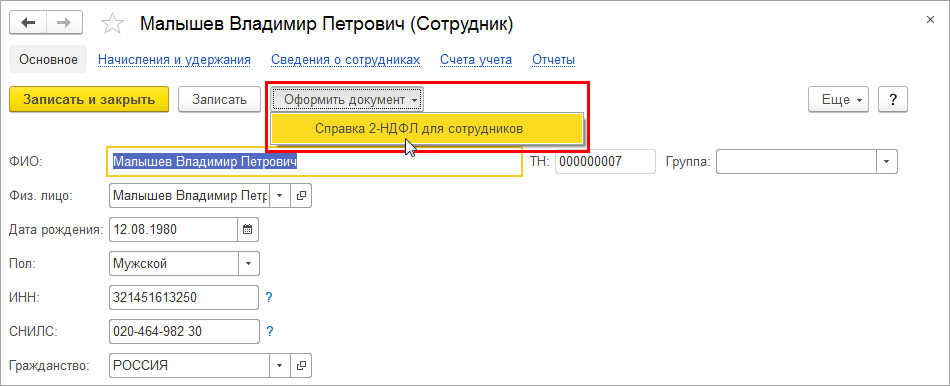 Появилась возможность формирования формы 2-НДФЛ для сотрудников. Данная справка содержит информацию о доходах, выплаченных сотруднику, и может потребоваться при получении кредита, имущественного или социального вычета, или смене места работы.