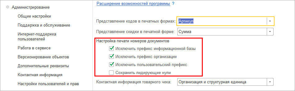 Появилась возможность настроить в каком формате номер документа будет выведен на печать.
