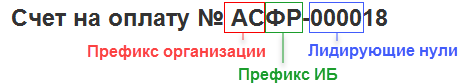 При установленном флаге Исключить префикс информационной базы на печать будет выведен номер АС-18; При установленном флаге Исключить префикс организации на печать будет выведен номер ФР-18; При установленном флаге Сохранить лидирующие нули на печать будет выведен номер АСФР-000018; При установленном флаге Исключить пользовательский префикс из номера будут скрыты префиксы, добавленные вручную.