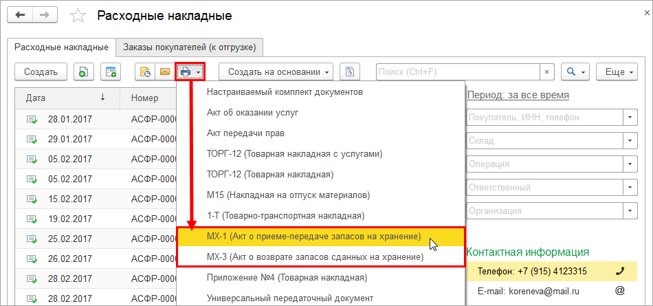 Новая функциональность работы с факсимильной подписью распространена на следующие печатные формы: