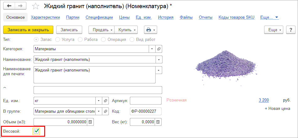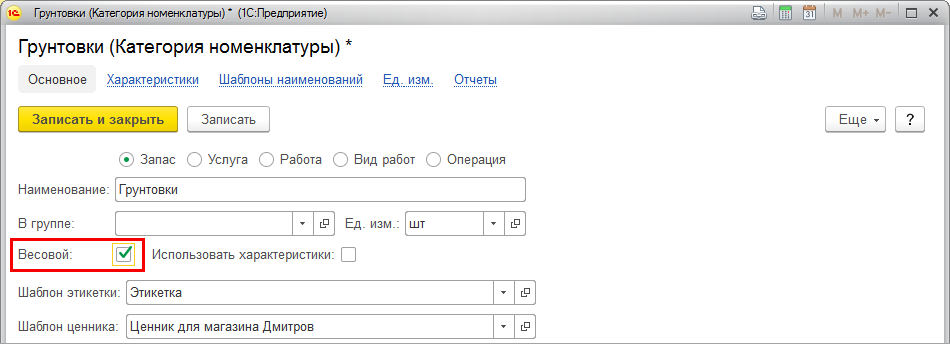 Для ситуаций, когда используется обмен с подключаемым оборудованием Offline, добавлен новый реквизит - Весовой. Он поможет системе отличать товары, которые должны выгружаться и нумероваться особым порядком на весах с печатью этикеток.