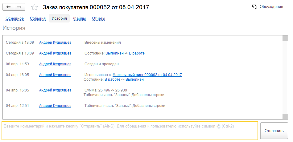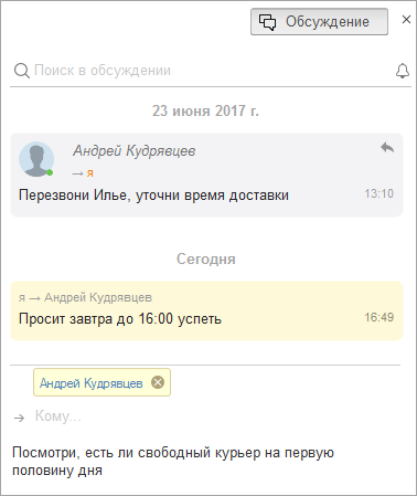 А еще появилась возможность обмениваться текстовыми сообщениями без привязки к какому-либо документу.