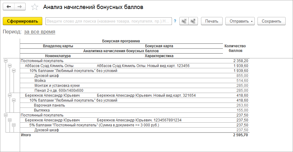 Для контроля и анализа бонусных программ лояльности добавлены отчеты: