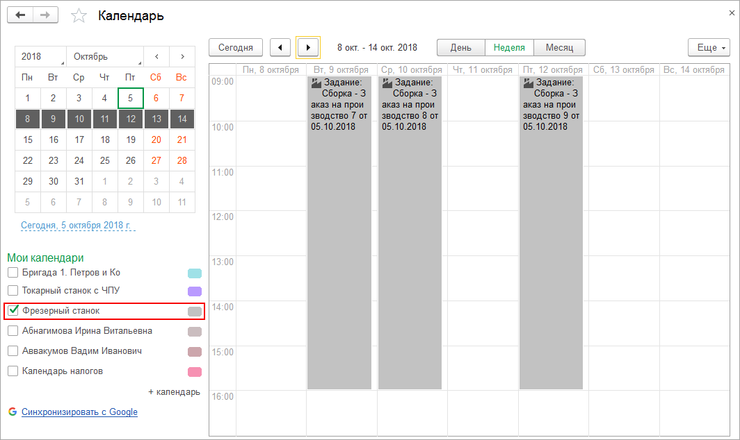 Чтобы отслеживать загрузку в календаре, в карточке ресурса необходимо указать календарь сотрудника или ресурса.