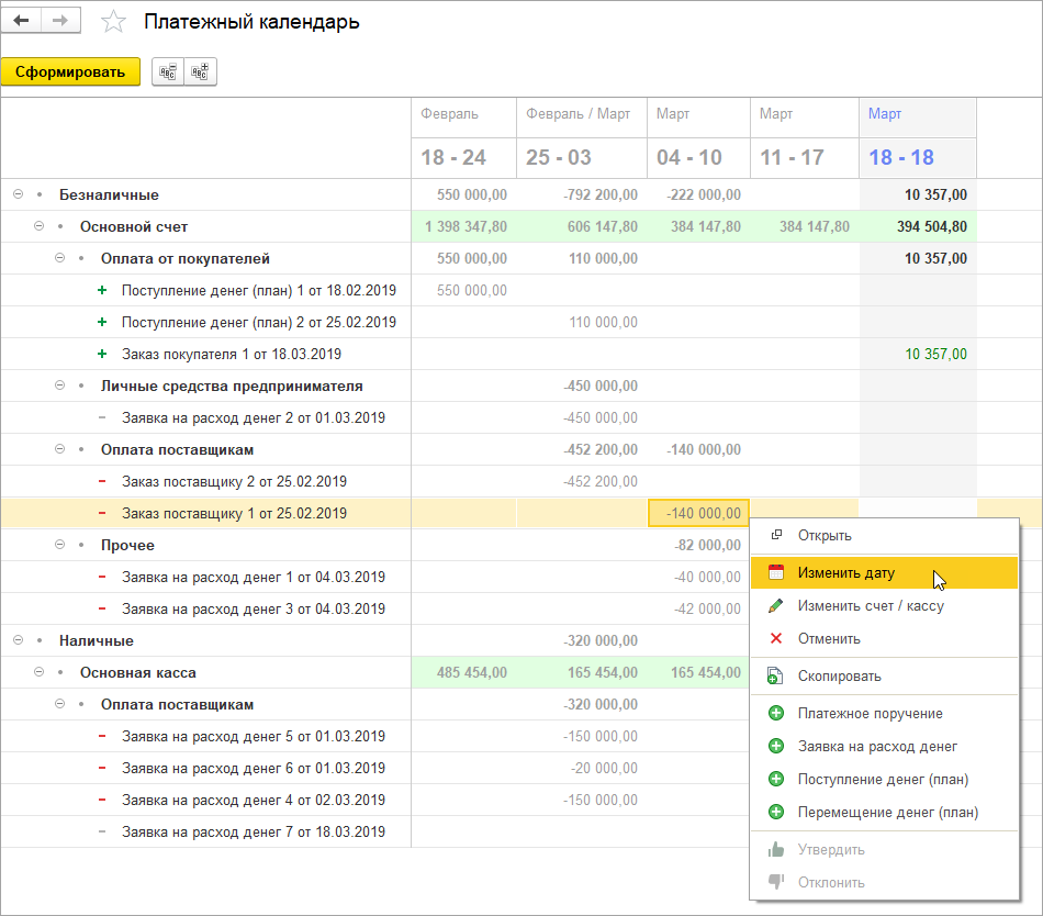 Если увидели кассовый разрыв и хотите перенести платеж на другую дату, то просто перетяните сумму платежа на новую дату в отчете.