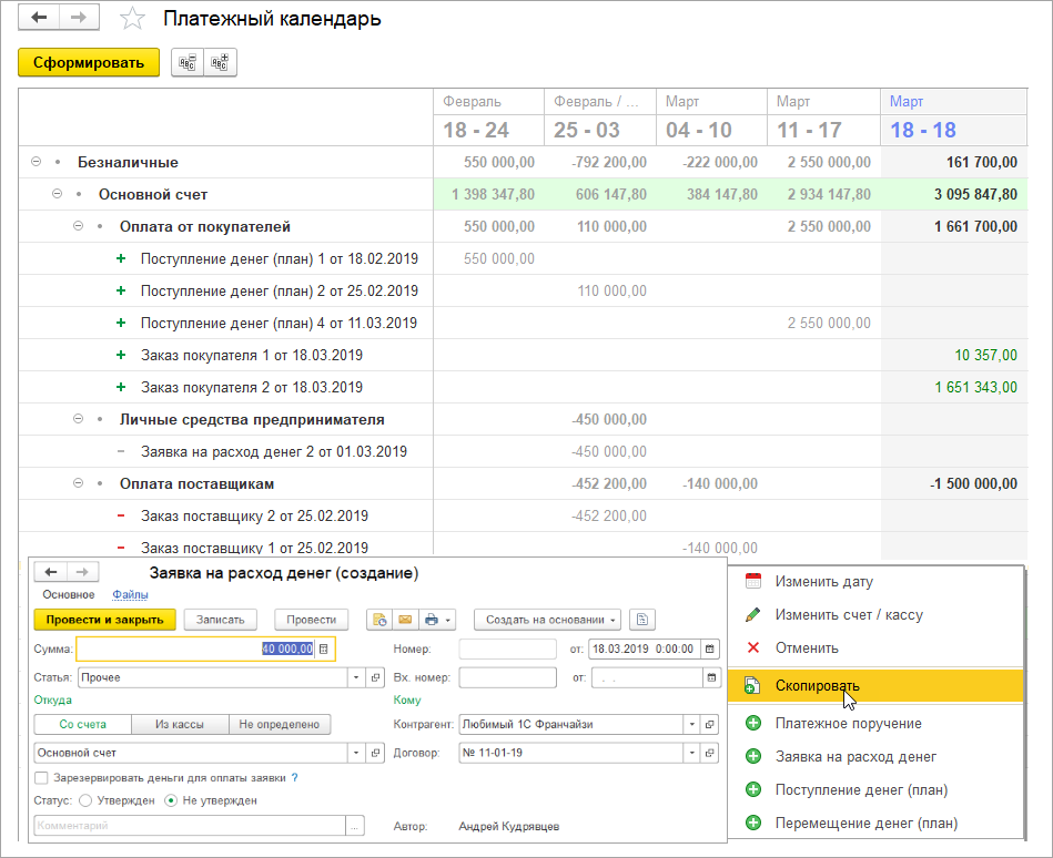 Чтобы запланировать платежи не нужно больше открывать списки или журналы документов.