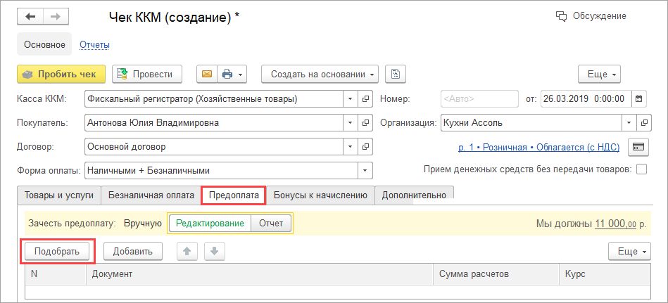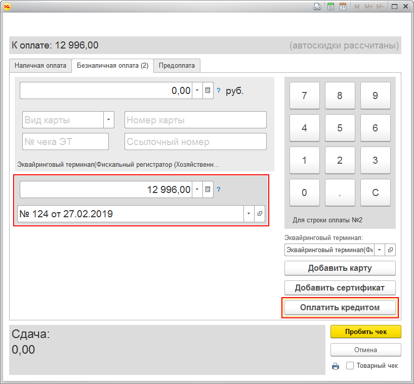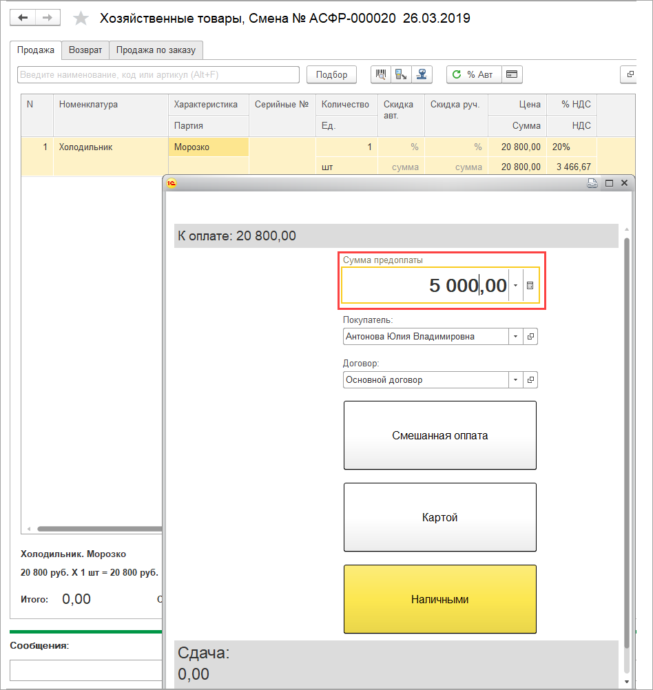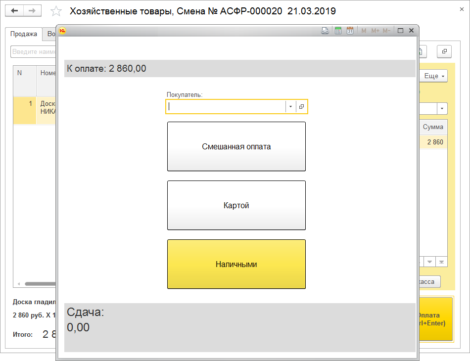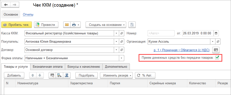 Но обязательно должен быть выбран соответствующий Способ оплаты (наличные или безналичные).