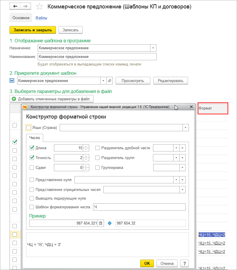 Для чисел, сумм и дат теперь можно выбирать формат печати. Используйте Формат, чтобы открыть конструктор форматной строки и создать свой формат.