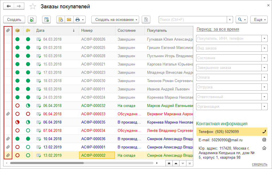 Чтобы узнать о том, что к заказу покупателя добавлены файлы, больше не нужно открывать документ.