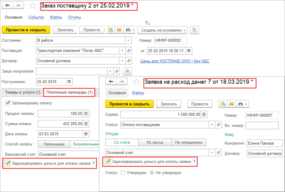 После проведения документов вы резервируете денежные средства для оплаты конкретной заявки, счета или заказа.