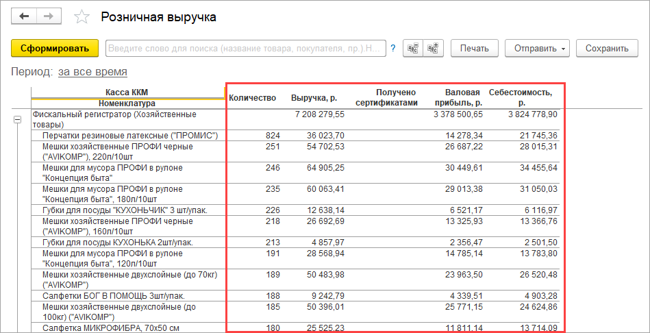Переходите из Выручки или Прибыли напротив состояния Совершена продажа в отчет Валовая прибыль по покупателям.
