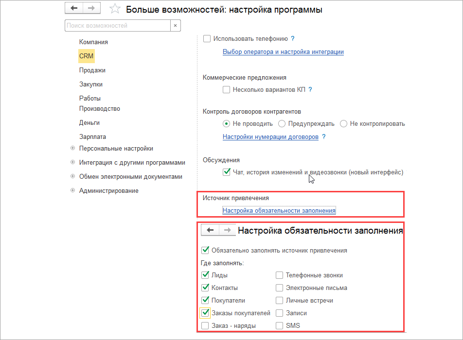 Вы можете настроить обязательность заполнения источника привлечения для выбранных объектов.