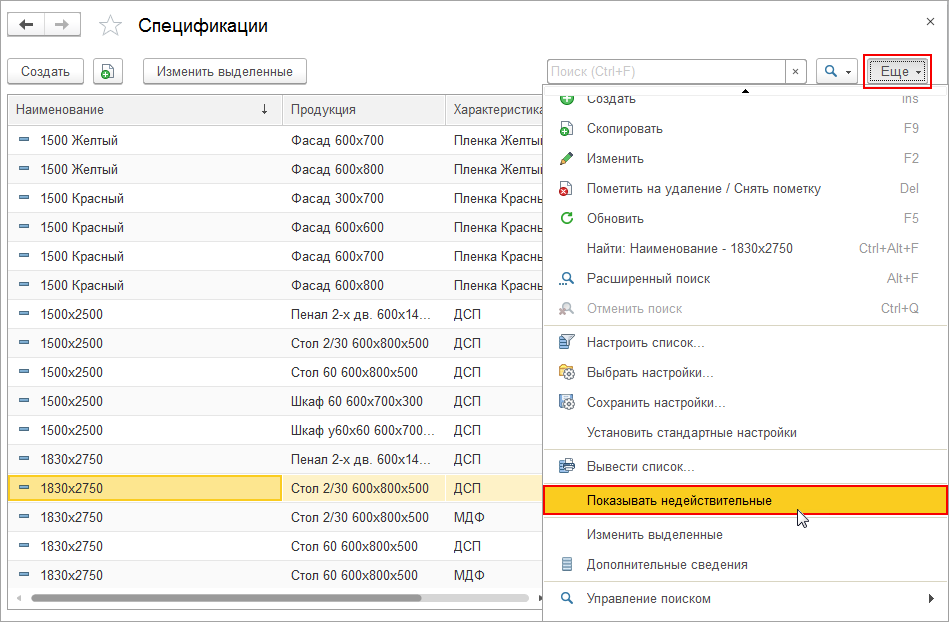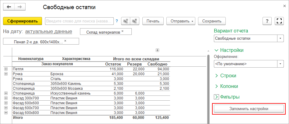 Останутся только строки с одинаковой номенклатурой, а над табличной частью появится возможность отключить фильтр.