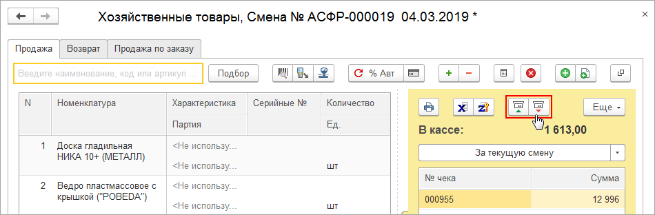 Строки с одинаковой номенклатурой отображаются особенным образом в колонке Количество.