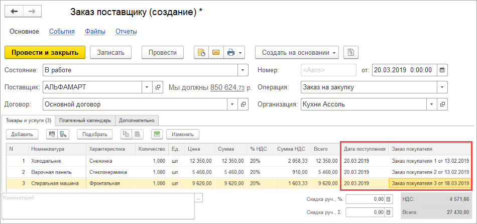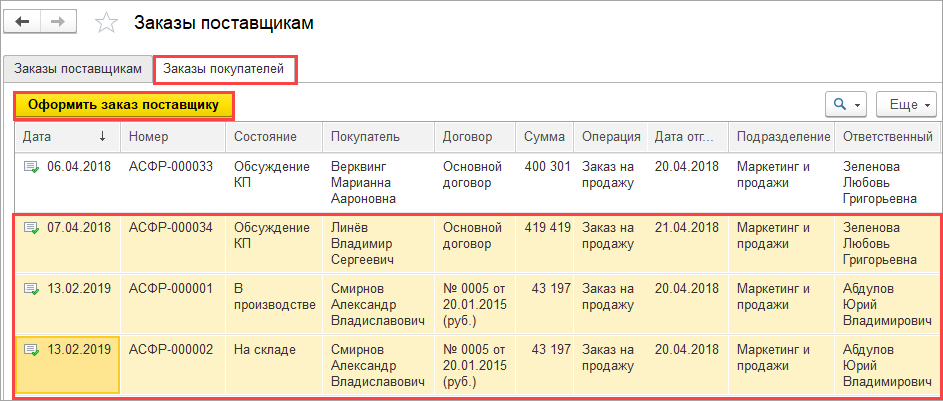 Вводить заказы поставщику стало проще: на основании нескольких заказов покупателей теперь можно создать один заказ поставщику.