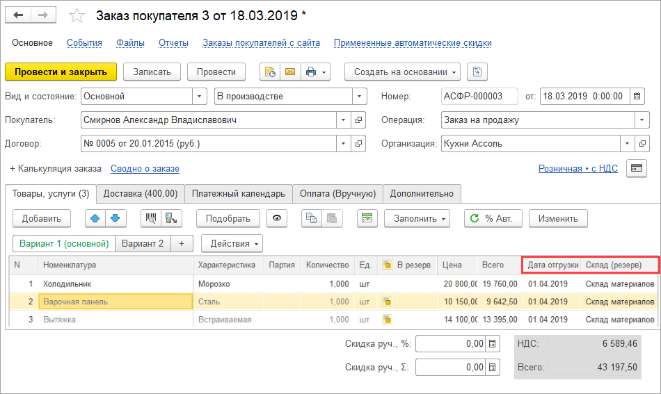 Устанавливать резерв на товары, хранящиеся на разных складах, теперь можно в одном заказе покупателя.