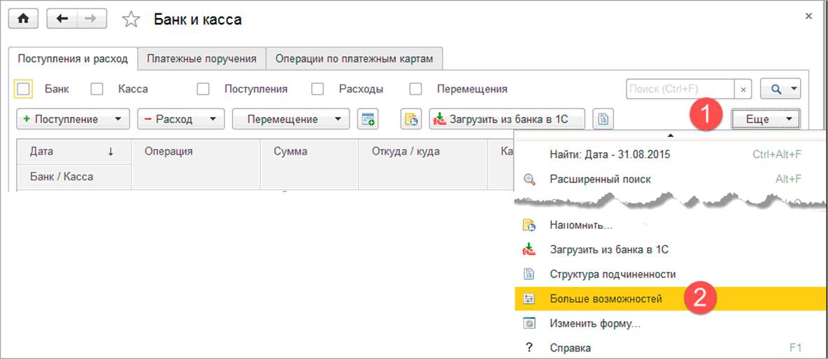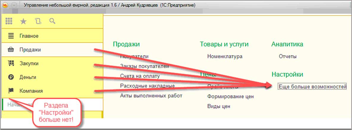Переход можно выполнить из любого раздела, из основных справочников и документов.